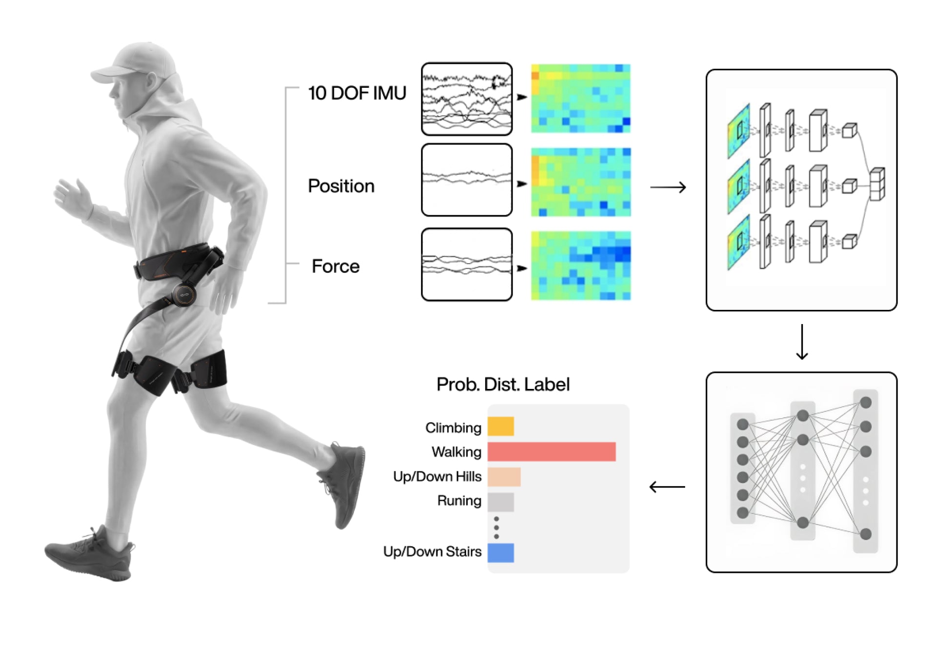 외골격은 다중 모드 센서를 사용하여 여러 소스의 정보를 수집합니다. 그것은 실시간으로 귀하의 움직임을 지속적으로 추적하며, 귀하이 어떻게 움직이고 귀하 아래 지형이 어떻게 변하는지에 대한 상세한 이해를 구축합니다.