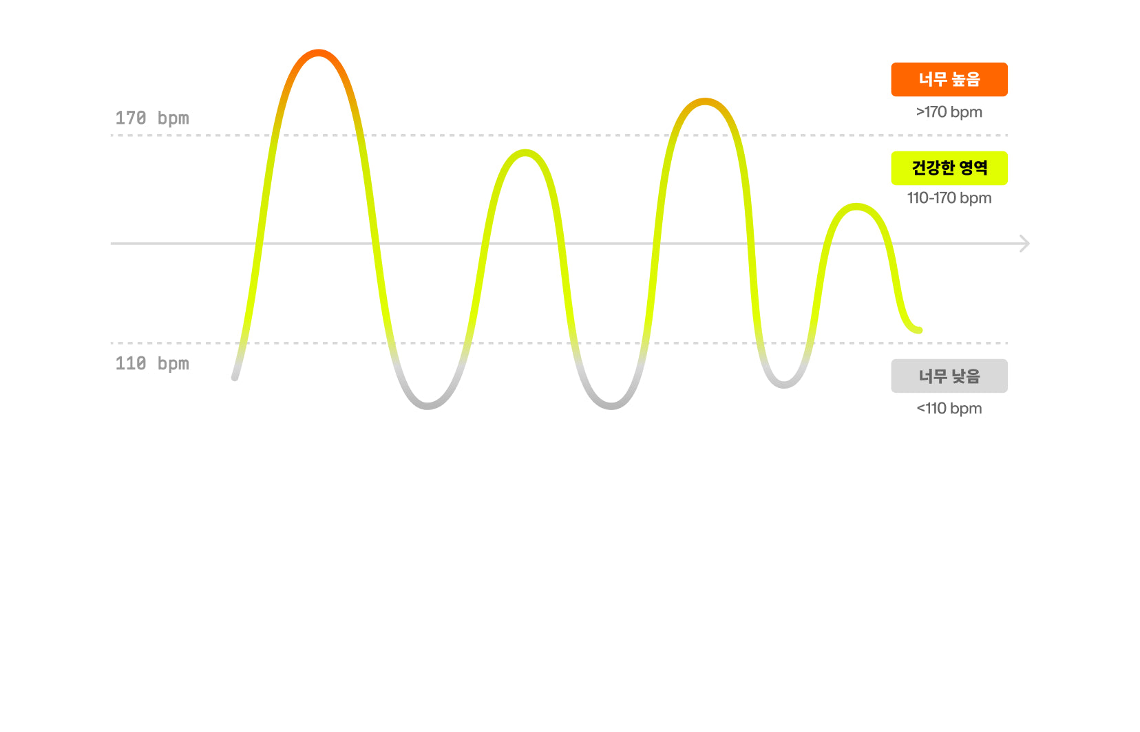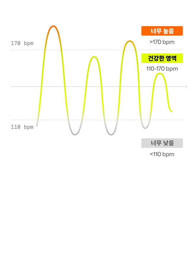심혈관 시스템에 가해지는 스트레스 지표를 보여줍니다. 심박수가 낮으면 에너지를 절약하고 체력을 과도하게 소모하지 않아 더 낮은 부담으로 고강도 운동 수행이 가능하며, 장기적으로 심장과 순환기 건강을 보호합니다