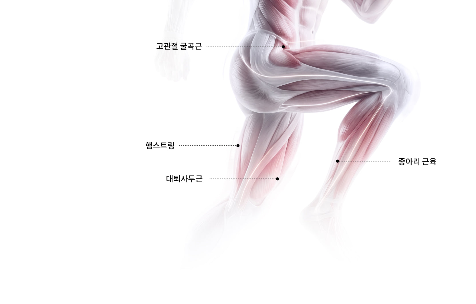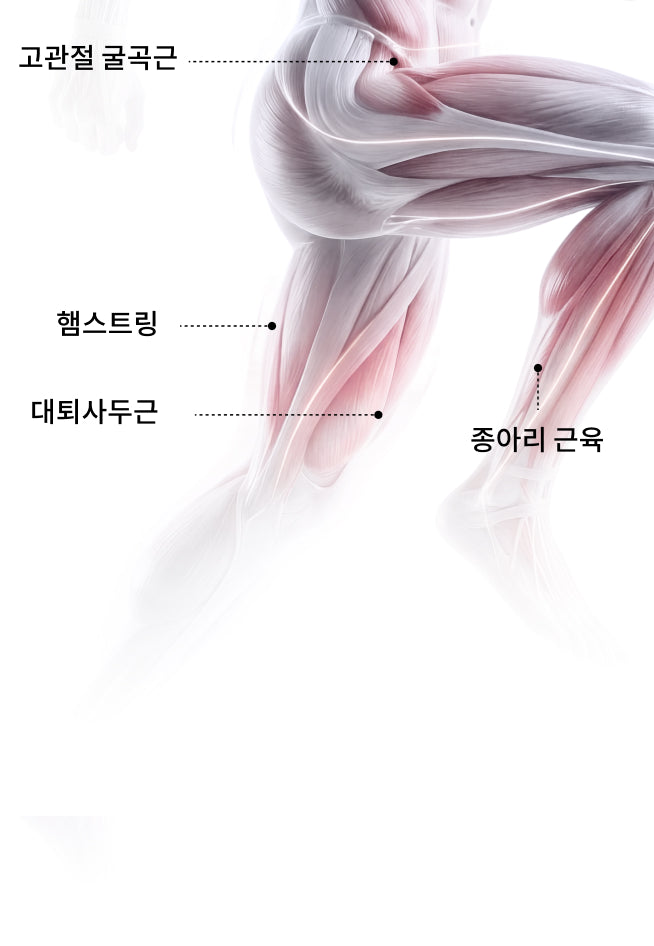 허벅지 상단에 밀착되어 자연스럽고 부드러운 움직임을 지원합니다.